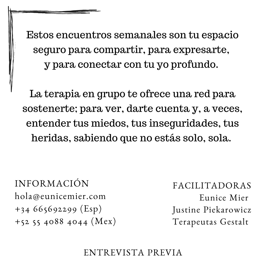 Modalidad: Presencial / Público: Mujeres mayores de18 años / Inversión: 75 € por sesión